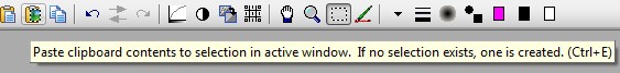 Besides applying effects to selections and cropping to selections, we can also paste the contents of the clipboard into a rectangular selection. Click on the Paste to selection icon on the toolbar or press Ctrl(E) to accomplish this action. If no selection exists in your selection, pressing either icon or Ctrl(E) will create a selection in the upper left of your image of a size to match the size of the image in the clipboard. You may move this selection before pressing the icon or Ctrl(E) a second time, which will paste the image into the selection marquee. If you expand or contract the size of the selection marquee, the image in the clipboard will be stretched or shrunk to fit the marquee.