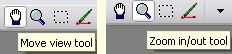 To get to the Zoom tool, click on the Magnifying Glass icon or press F8 once or twice. F8 toggles between the Zoom tool and the Select tool. When the Zoom tool is active, click the left mouse button to zoom in and the right mouse button to zoom out. The place on the image where you click the zoom tool will be the center of the zoomed image. This feature allows you to get a close view of any part of the image you want to inspect more closely.