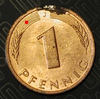Below is an example with images of a copper coin. The red square marks the part of the coin that we are interested in. Six images were acquired at different Z values and combined using the MultiFocus plugin. Note that the original images are 3 megapixels but have been decimated to reduce download time.